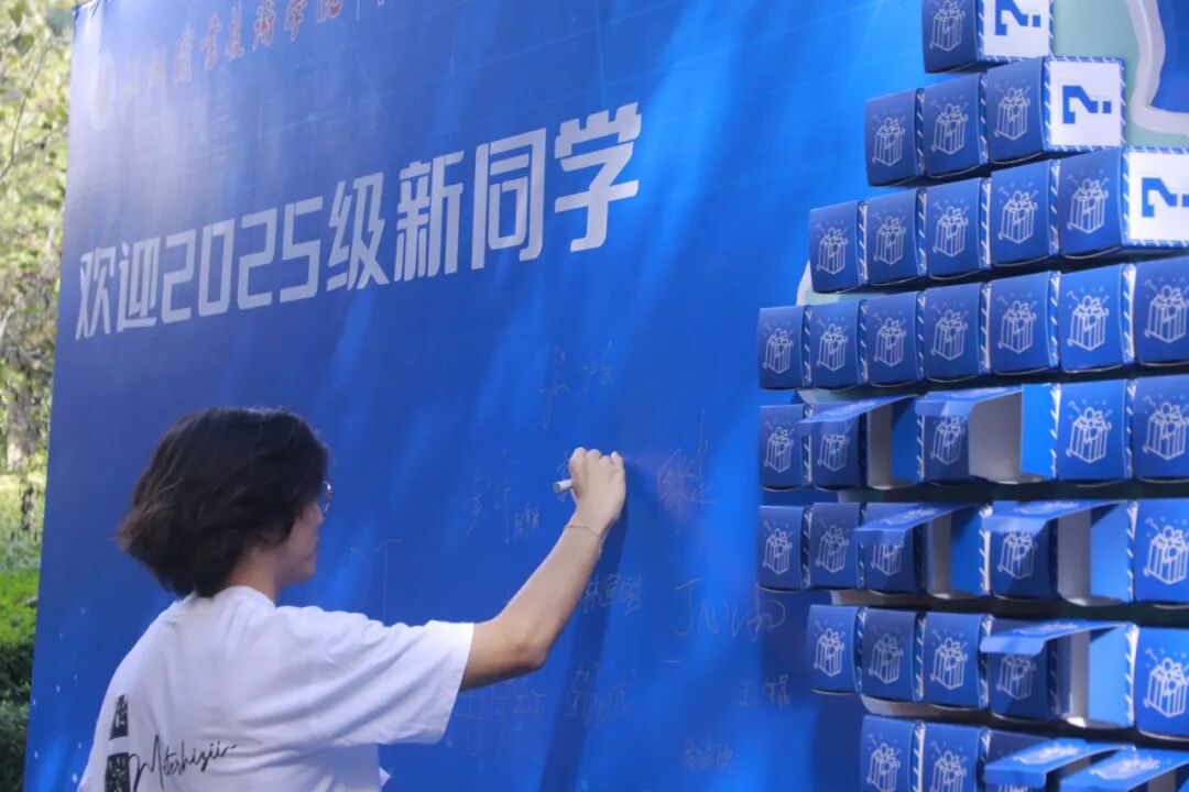 初到智能制造学院,新生们在迎新喷绘前郑重签下自己的姓名,以极具仪式感的形式开启大学新篇章。