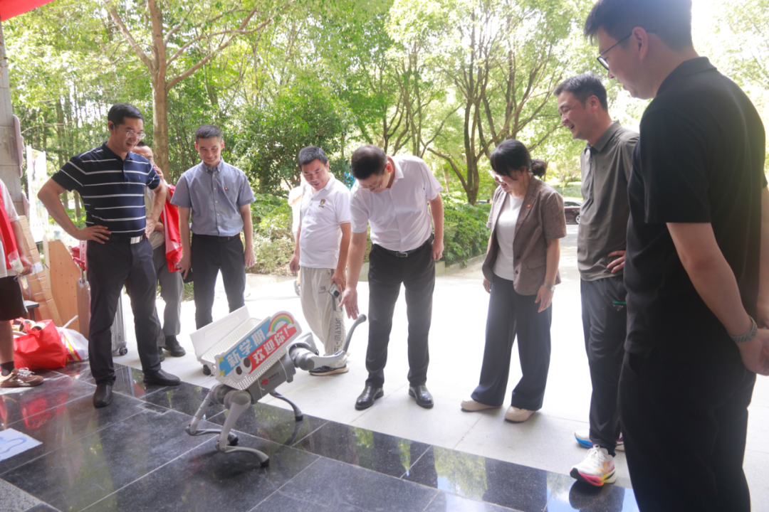 现场,新型智能机器狗‘学长’活力上线,不仅能自如行走、还能撒娇卖萌,有趣的互动和表演,充满科技感的惊喜体验,让迎新既实用又充满趣味。