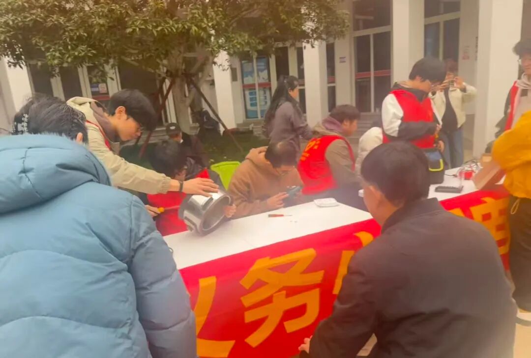 为践行志愿服务精神,传递青年担当,智能制造学院家电维修社志愿者再次走进南汇街道万源社区,开展小家电免费维修公益活动。